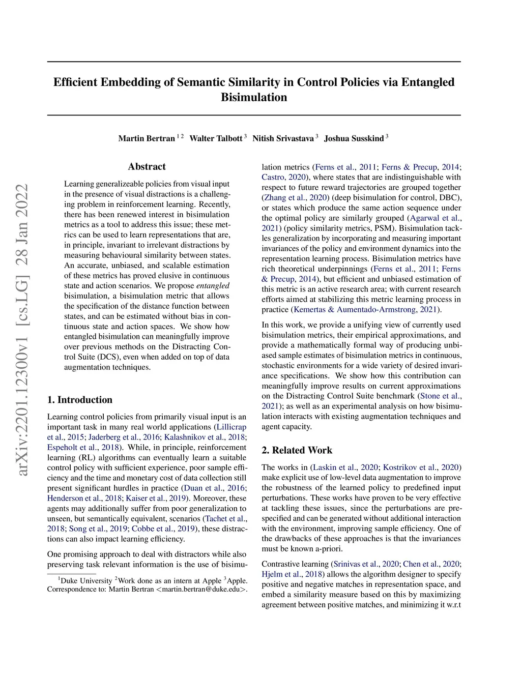 Learning generalizeable policies from visual input in the presence of visual distractions is a challenging problem in reinforcement learning. Recently, there has been renewed interest in bisimulation metrics as a tool to address this issue; these metrics can be used to learn representations that are, in principle, invariant to irrelevant distractions by measuring behavioural similarity between states. An accurate, unbiased, and scalable estimation of these metrics has proved elusive in continuous state and action scenarios. We propose entangled bisimulation, a bisimulation metric that allows the specification of the distance function between states, and can be estimated without bias in continuous state and action spaces. We show how entangled bisimulation can meaningfully improve over previous methods on the Distracting Control Suite (DCS), even when added on top of data augmentation techniques.