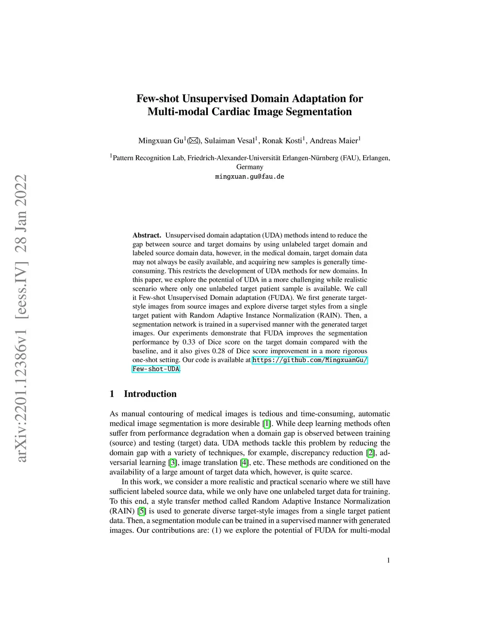 Few-shot Unsupervised Domain Adaptation for Multi-modal Cardiac Image