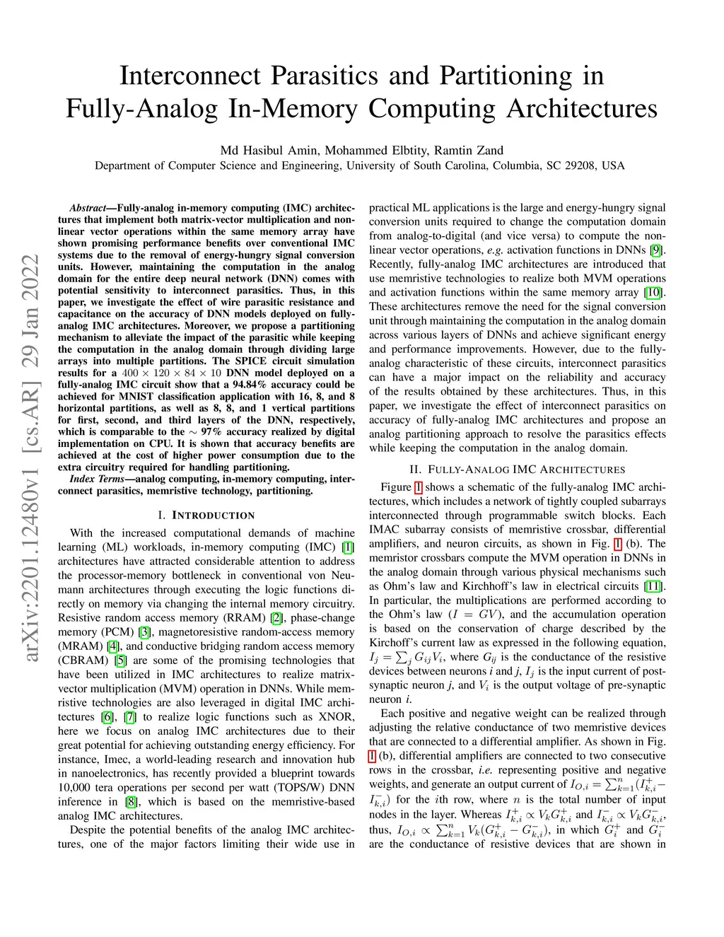 Interconnect Parasitics and Partitioning in Fully-Analog In-Memory