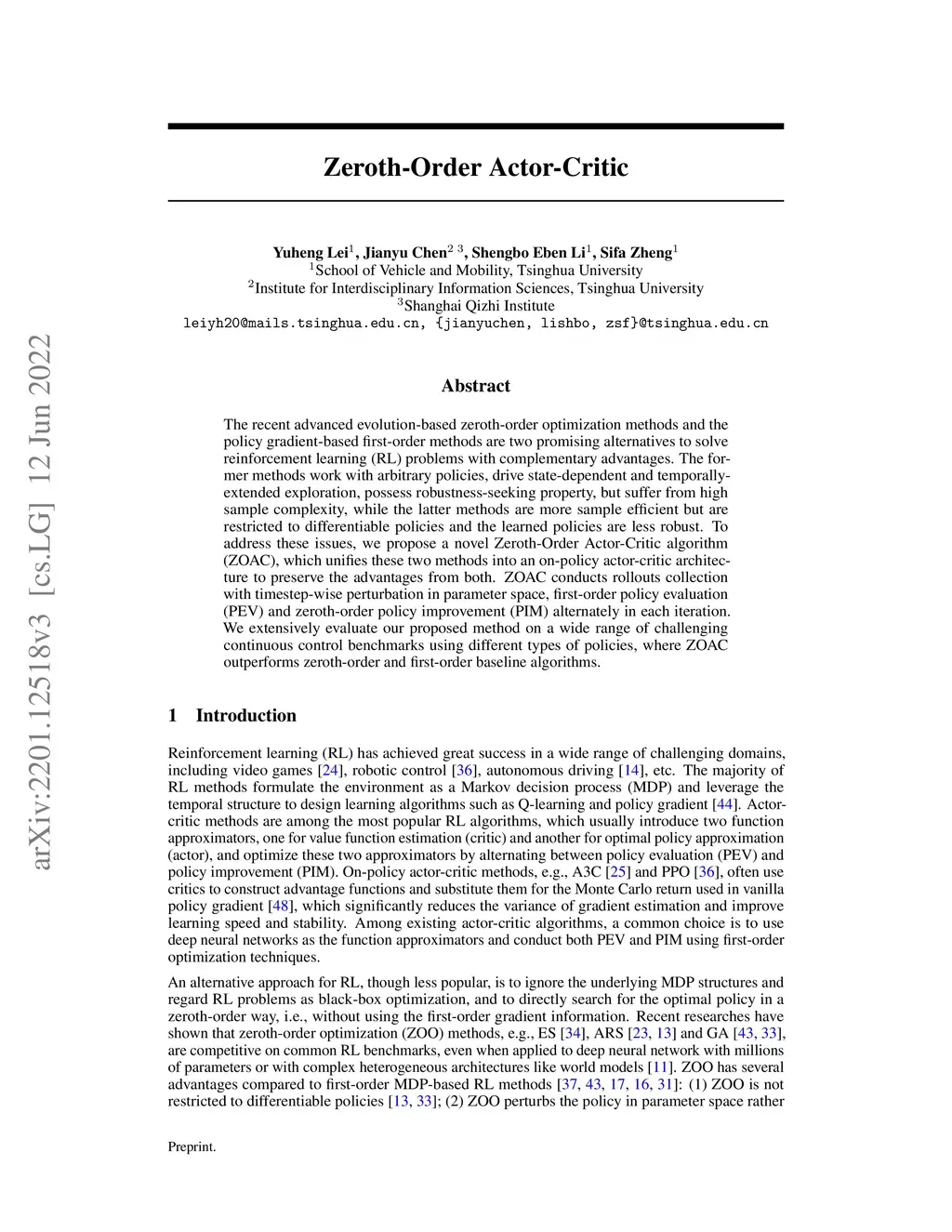 Zeroth-Order Actor-Critic: An Evolutionary Framework for Sequential Decision Problems