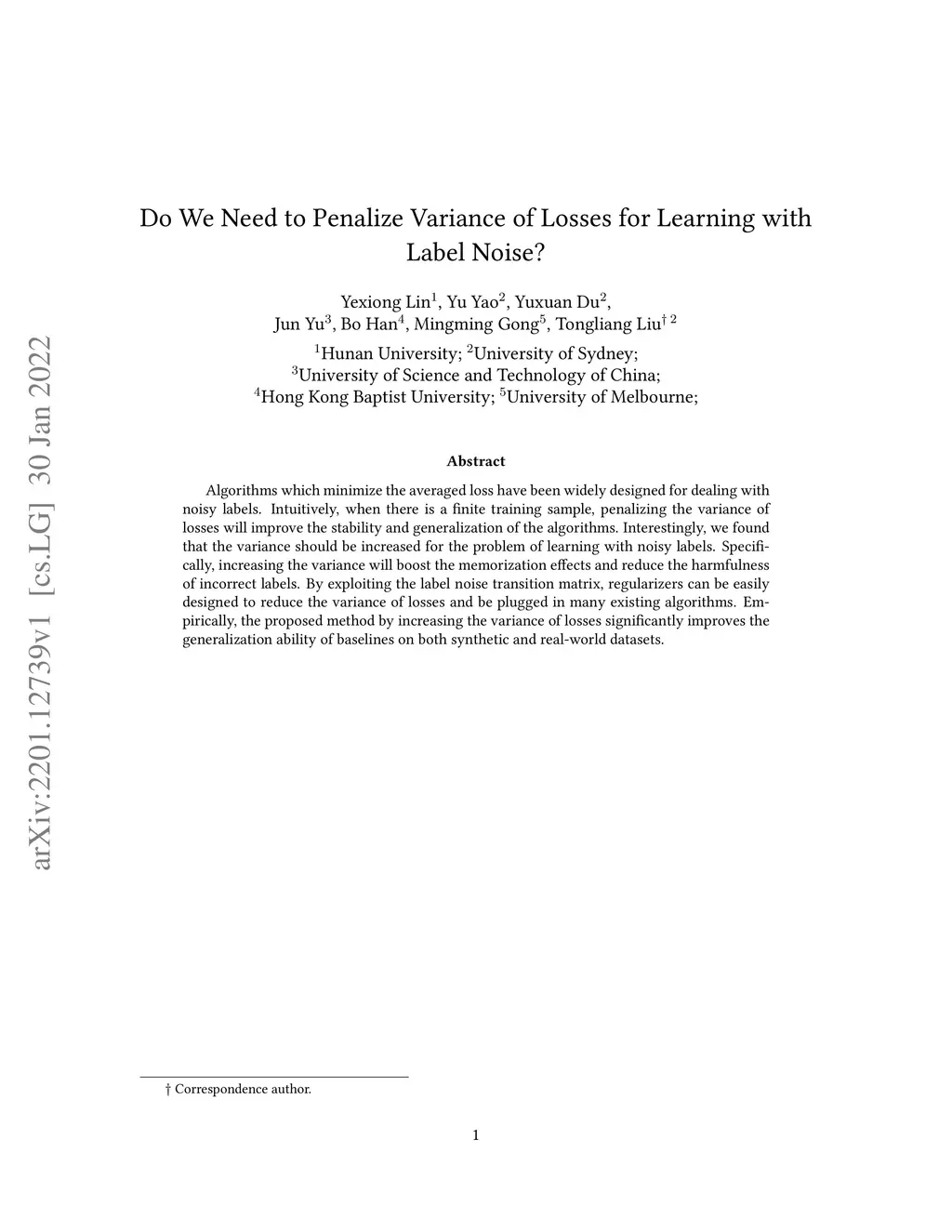 Do We Need to Penalize Variance of Losses for Learning with Label Noise?