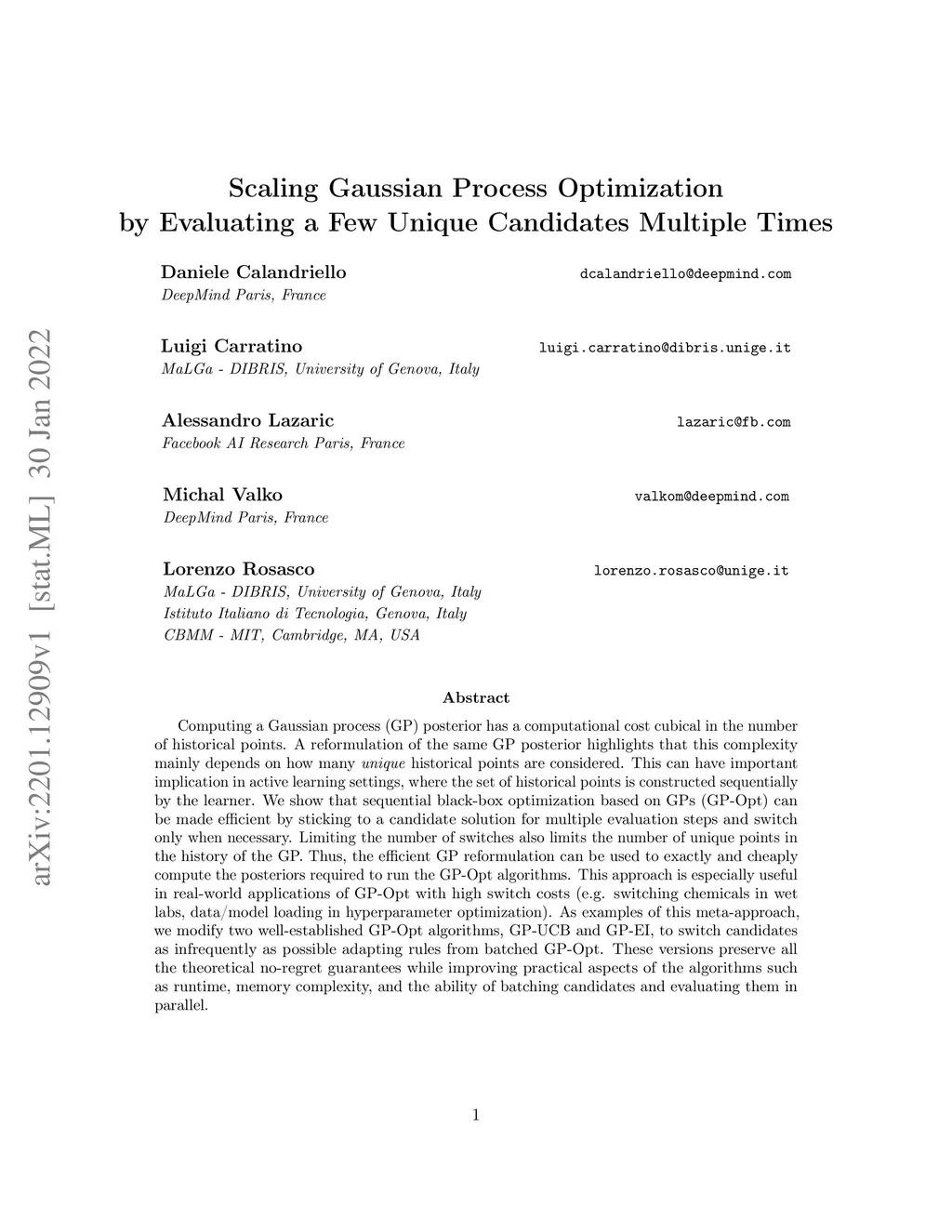 Scaling Gaussian Process Optimization by Evaluating a Few Unique