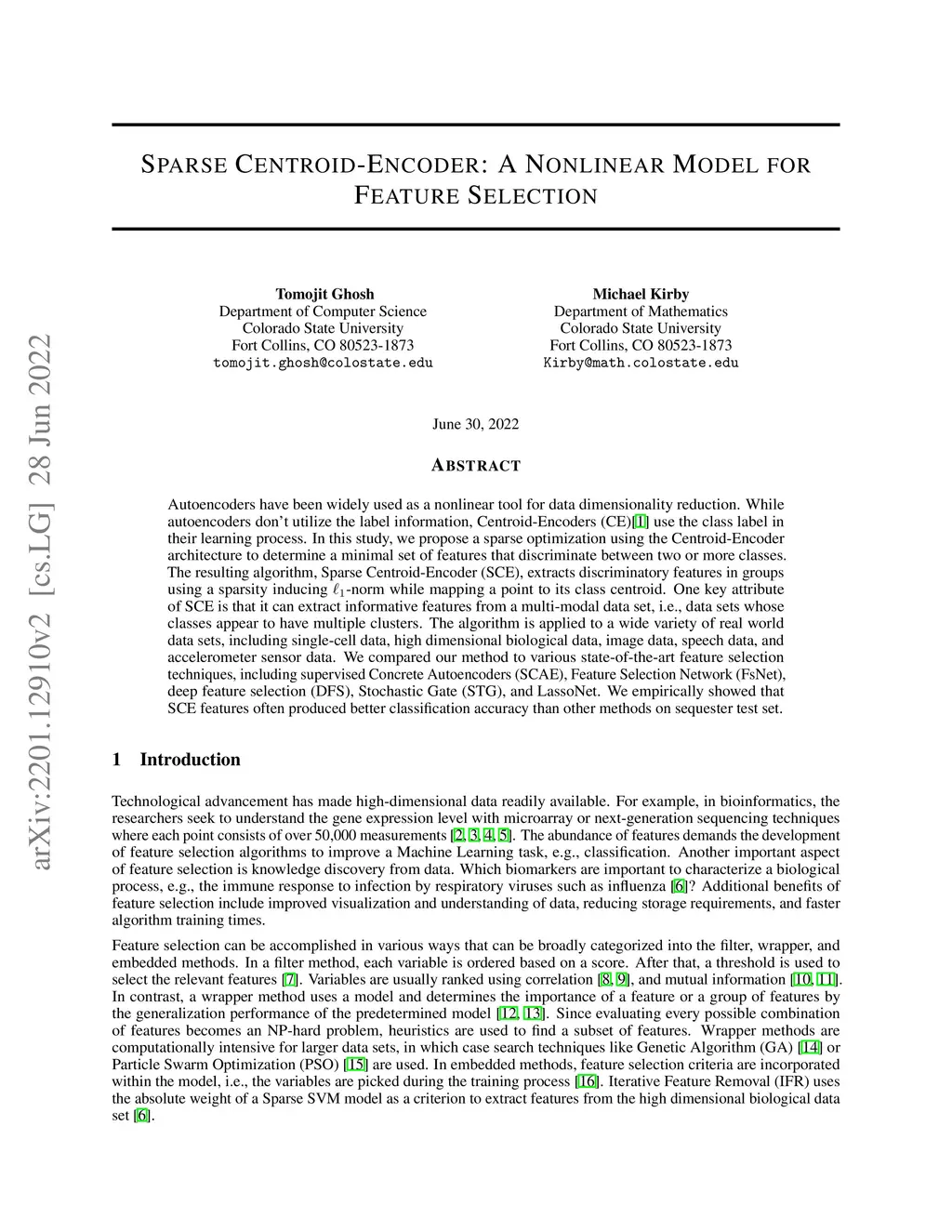 Sparse Centroid-Encoder: A Nonlinear Model for Feature Selection