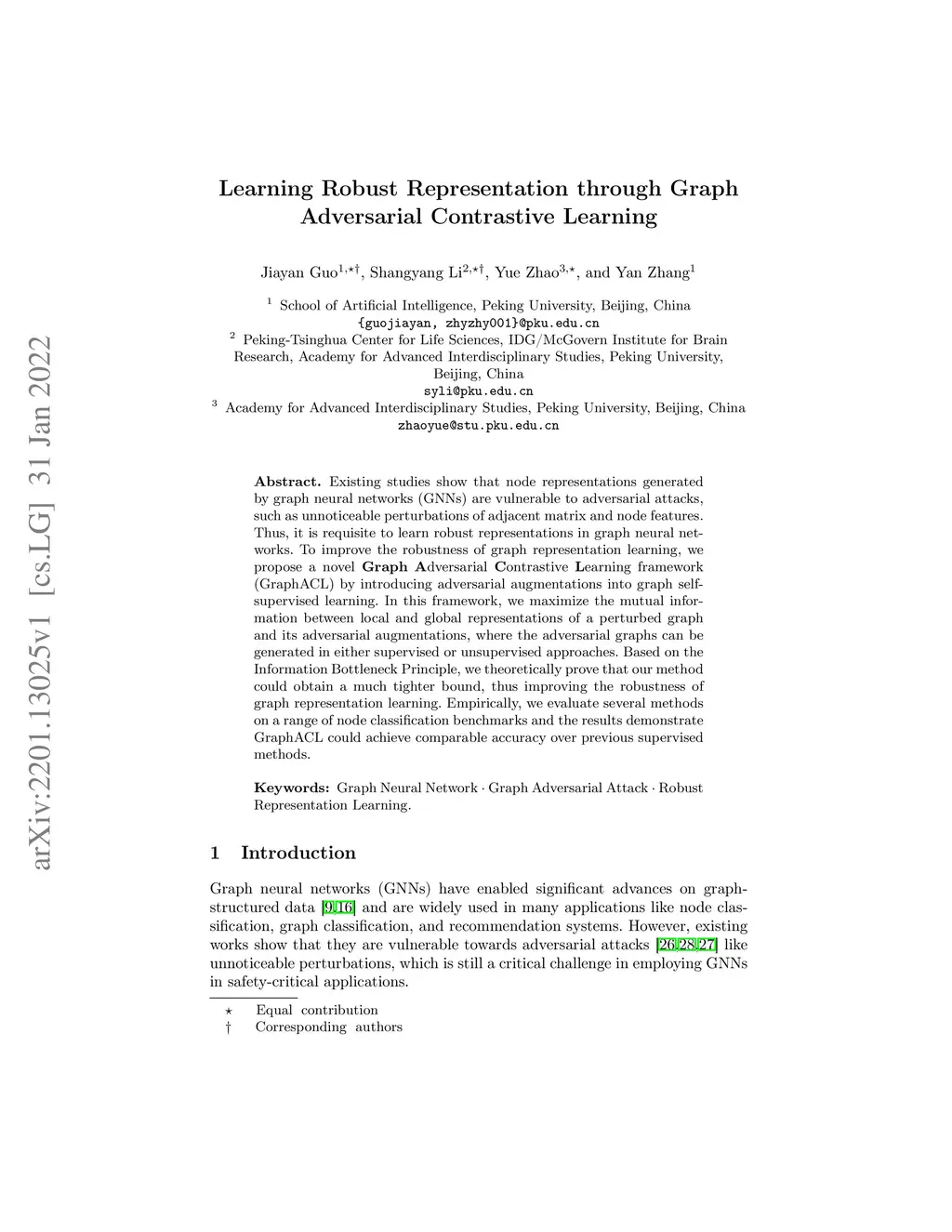 Existing studies show that node representations generated by graph neural networks (GNNs) are vulnerable to adversarial attacks, such as unnoticeable perturbations of adjacent matrix and node features. Thus, it is requisite to learn robust representations in graph neural networks. To improve the robustness of graph representation learning, we propose a novel Graph Adversarial Contrastive Learning framework (GraphACL) by introducing adversarial augmentations into graph self-supervised learning. In this framework, we maximize the mutual information between local and global representations of a perturbed graph and its adversarial augmentations, where the adversarial graphs can be generated in either supervised or unsupervised approaches. Based on the Information Bottleneck Principle, we theoretically prove that our method could obtain a much tighter bound, thus improving the robustness of graph representation learning. Empirically, we evaluate several methods on a range of node classification benchmarks and the results demonstrate GraphACL could achieve comparable accuracy over previous supervised methods.
