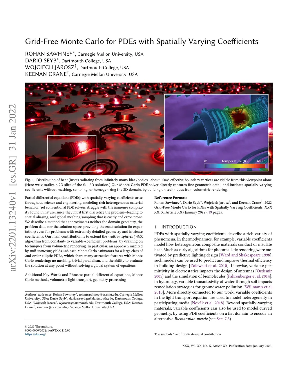 Grid-Free Monte Carlo for PDEs with Spatially Varying Coefficients
