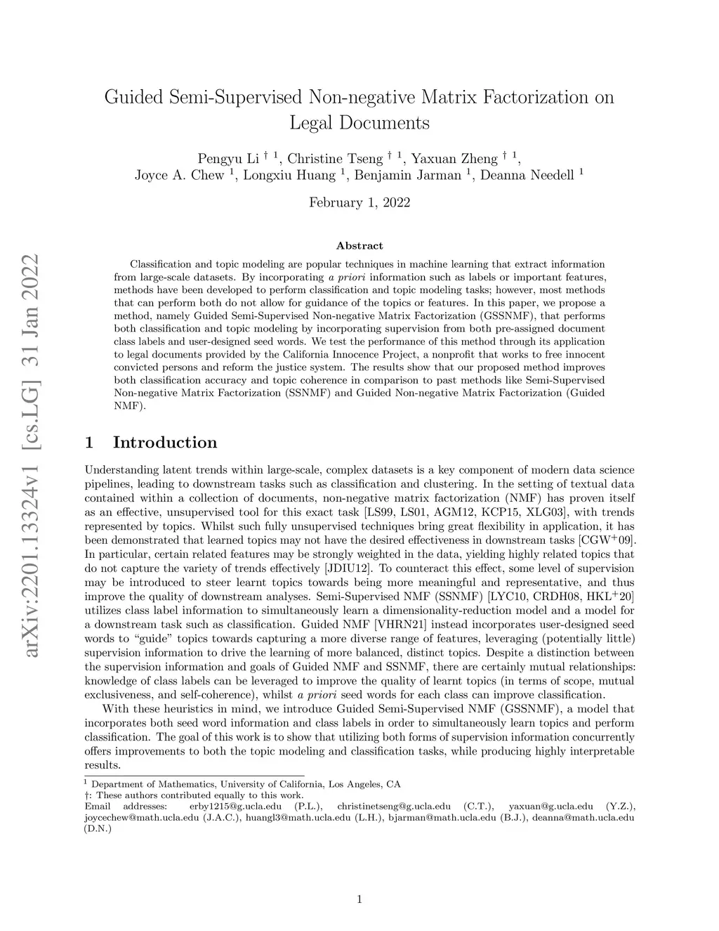 Guided Semi-Supervised Non-negative Matrix Factorization on Legal