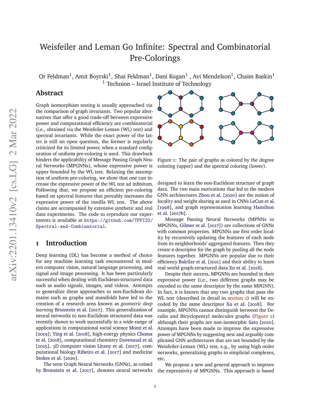 Graph isomorphism testing is usually approached via the comparison of graph invariants. Two popular alternatives that offer a good trade-off between expressive power and computational efficiency are combinatorial (i.e., obtained via the Weisfeiler-Leman (WL) test) and spectral invariants. While the exact power of the latter is still an open question, the former is regularly criticized for its limited power, when a standard configuration of uniform pre-coloring is used. This drawback hinders the applicability of Message Passing Graph Neural Networks (MPGNNs), whose expressive power is upper bounded by the WL test. Relaxing the assumption of uniform pre-coloring, we show that one can increase the expressive power of the WL test ad infinitum. Following that, we propose an efficient pre-coloring based on spectral features that provably increase the expressive power of the vanilla WL test. The above claims are accompanied by extensive synthetic and real data experiments. The code to reproduce our experiments is available at https://github.com/TPFI22/Spectral-and-Combinatorial