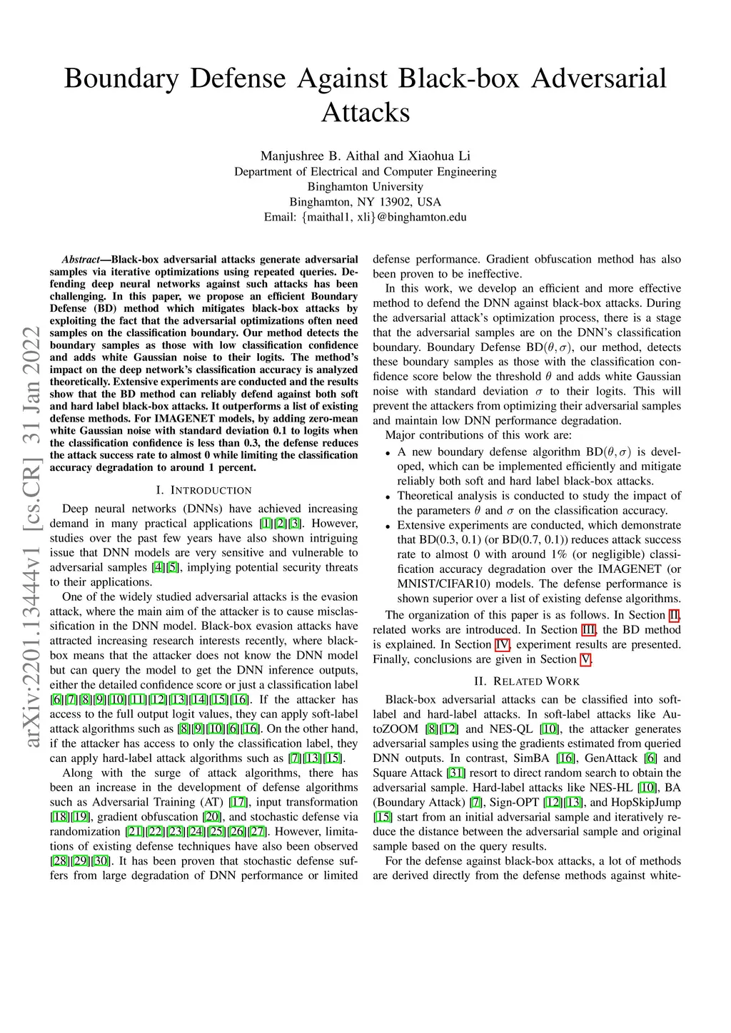 Boundary Defense Against Black-box Adversarial Attacks