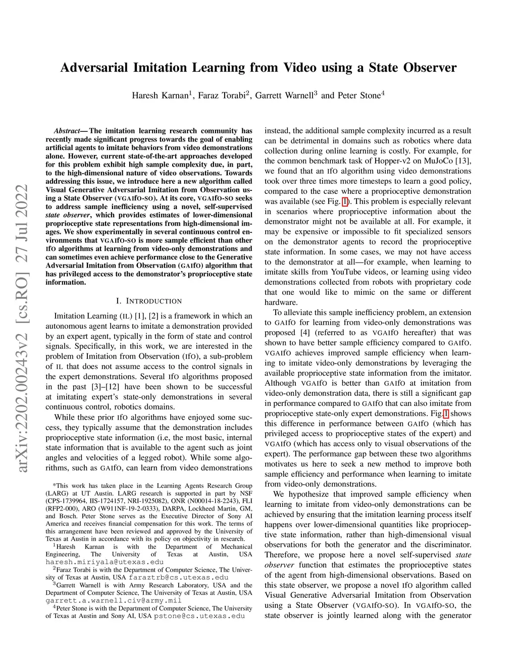 Adversarial Imitation Learning from Video using a State Observer