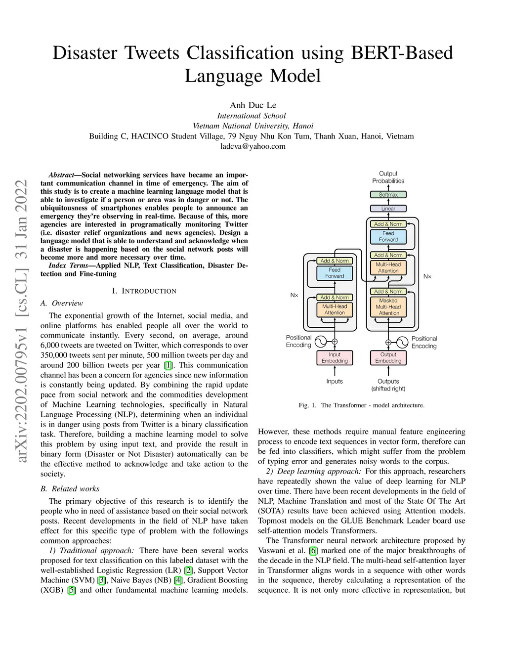 Social networking services have became an important communication channel in time of emergency. The aim of this study is to create a machine learning language model that is able to investigate if a person or area was in danger or not. The ubiquitousness of smartphones enables people to announce an emergency they are observing in real-time. Because of this, more agencies are interested in programmatically monitoring Twitter (i.e. disaster relief organizations and news agencies). Design a language model that is able to understand and acknowledge when a disaster is happening based on the social network posts will become more and more necessary over time.