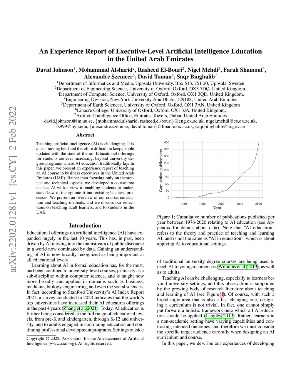 Teaching artificial intelligence (AI) is challenging. It is a fast moving field and therefore difficult to keep people updated with the state-of-the-art. Educational offerings for students are ever increasing, beyond university degree programs where AI education traditionally lay. In this paper, we present an experience report of teaching an AI course to business executives in the United Arab Emirates (UAE). Rather than focusing only on theoretical and technical aspects, we developed a course that teaches AI with a view to enabling students to understand how to incorporate it into existing business processes. We present an overview of our course, curriculum and teaching methods, and we discuss our reflections on teaching adult learners, and to students in the UAE.