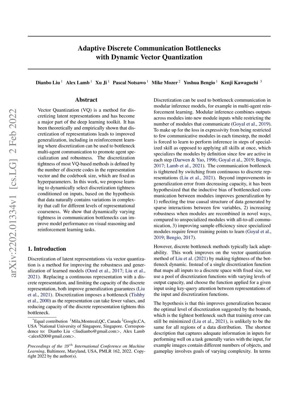 Adaptive Discrete Communication Bottlenecks with Dynamic Vector