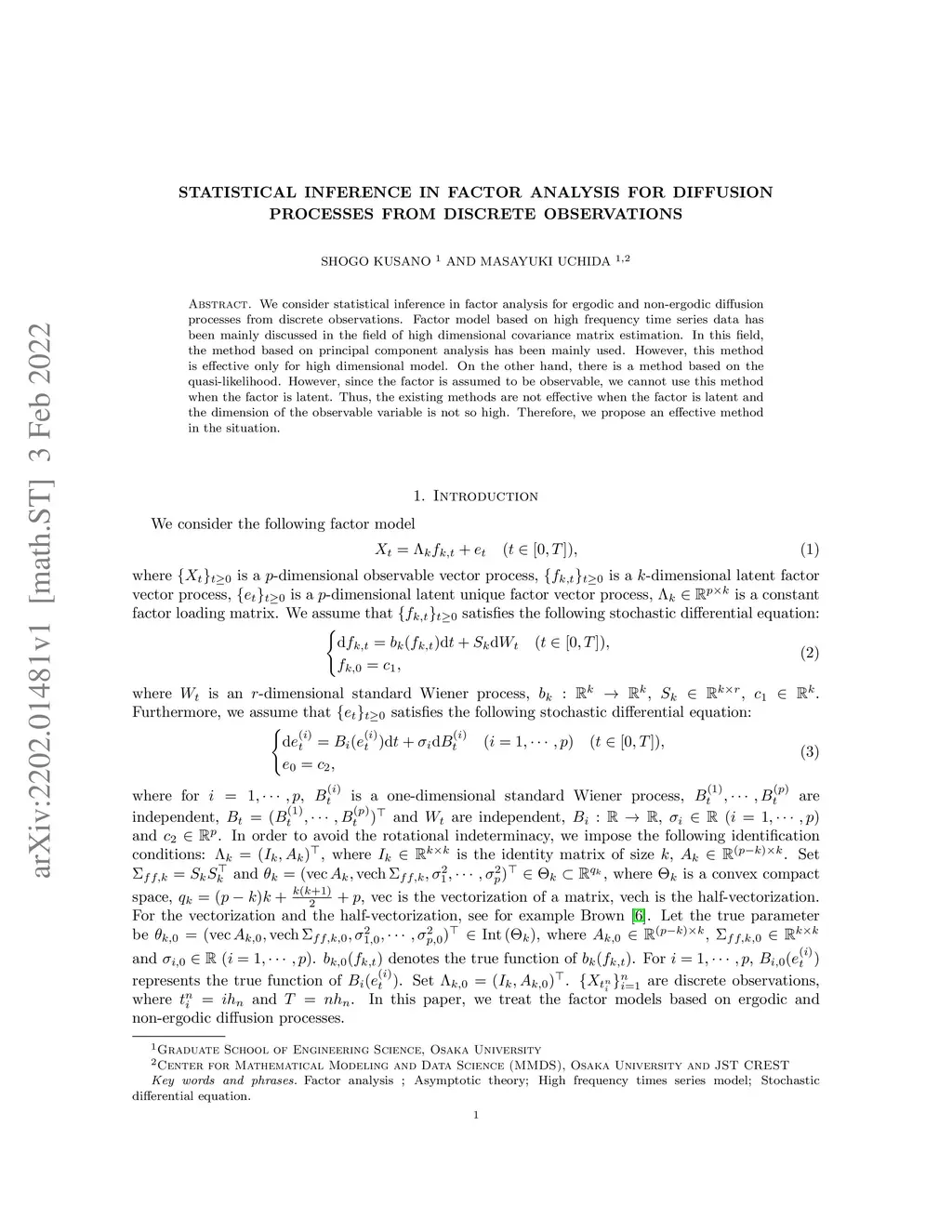 Statistical inference in factor analysis for diffusion processes from