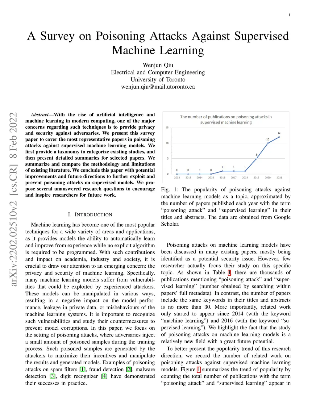 With the rise of artificial intelligence and machine learning in modern computing, one of the major concerns regarding such techniques is to provide privacy and security against adversaries. We present this survey paper to cover the most representative papers in poisoning attacks against supervised machine learning models. We first provide a taxonomy to categorize existing studies and then present detailed summaries for selected papers. We summarize and compare the methodology and limitations of existing literature. We conclude this paper with potential improvements and future directions to further exploit and prevent poisoning attacks on supervised models. We propose several unanswered research questions to encourage and inspire researchers for future work.