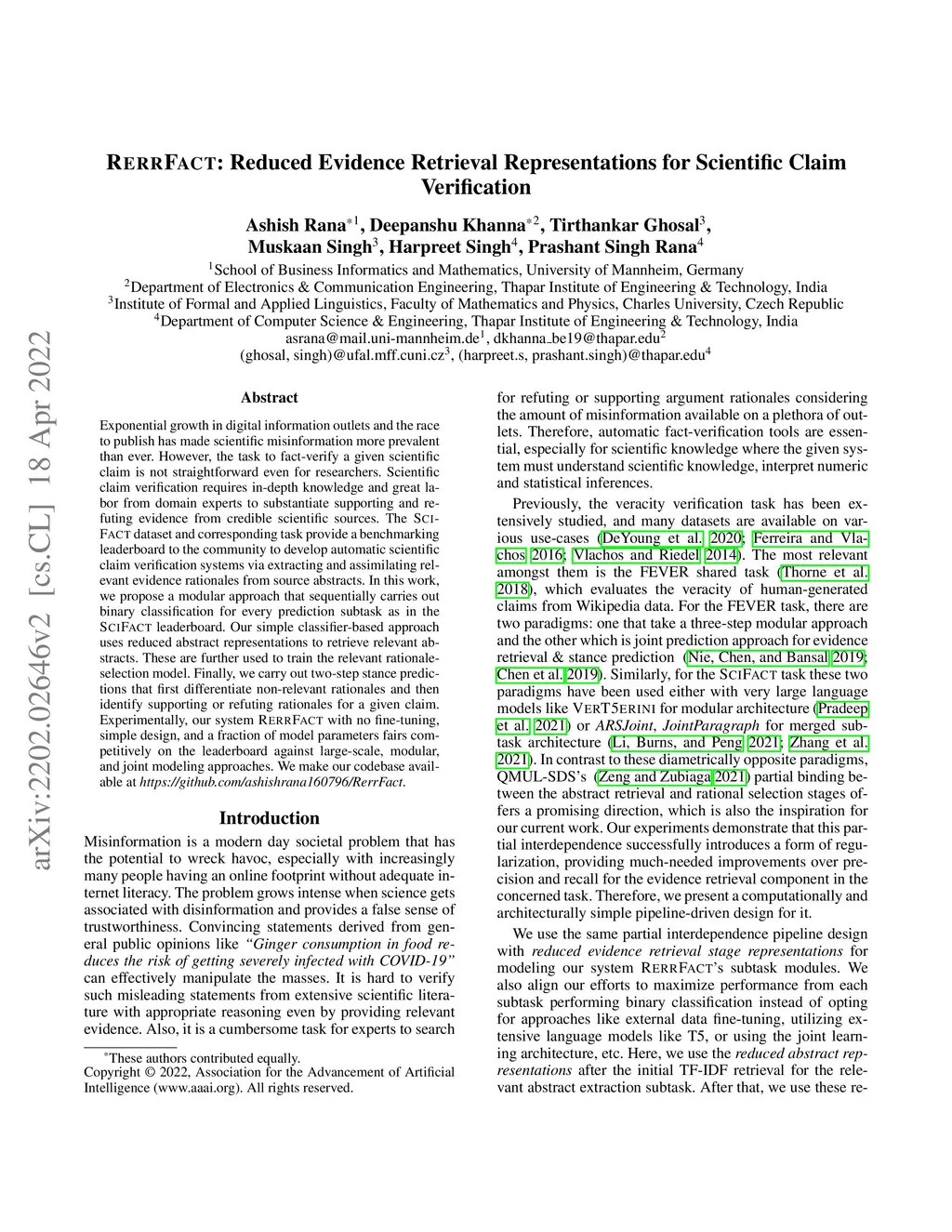 RerrFact: Reduced Evidence Retrieval Representations for Scientific