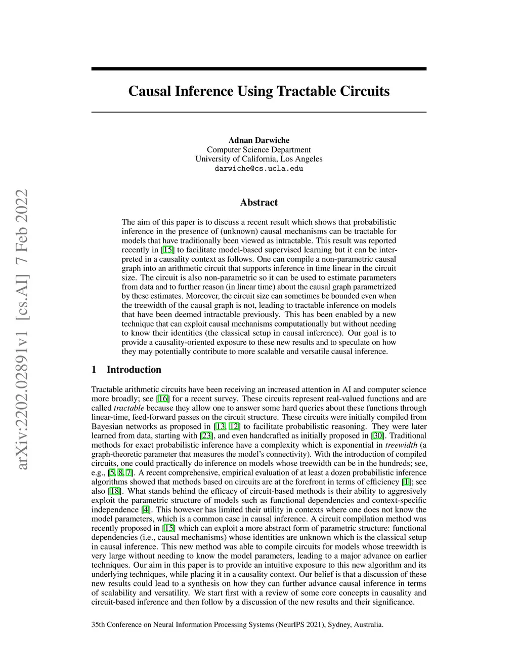 The aim of this paper is to discuss a recent result which shows that probabilistic inference in the presence of (unknown) causal mechanisms can be tractable for models that have traditionally been viewed as intractable. This result was reported recently to facilitate model-based supervised learning but it can be interpreted in a causality context as follows. One can compile a non-parametric causal graph into an arithmetic circuit that supports inference in time linear in the circuit size. The circuit is also non-parametric so it can be used to estimate parameters from data and to further reason (in linear time) about the causal graph parametrized by these estimates. Moreover, the circuit size can sometimes be bounded even when the treewidth of the causal graph is not, leading to tractable inference on models that have been deemed intractable previously. This has been enabled by a new technique that can exploit causal mechanisms computationally but without needing to know their identities (the classical setup in causal inference). Our goal is to provide a causality-oriented exposure to these new results and to speculate on how they may potentially contribute to more scalable and versatile causal inference.