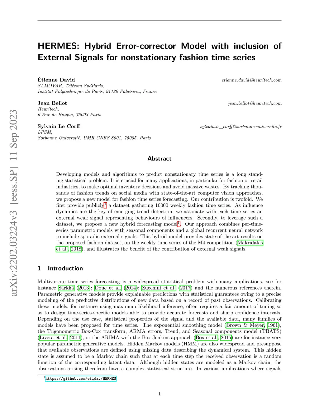 Developing models and algorithms to predict nonstationary time series is a long standing statistical problem. It is crucial for many applications, in particular for fashion or retail industries, to make optimal inventory decisions and avoid massive wastes. By tracking thousands of fashion trends on social media with state-of-the-art computer vision approaches, we propose a new model for fashion time series forecasting. Our contribution is twofold. We first provide publicly a dataset gathering 10000 weekly fashion time series. As influence dynamics are the key of emerging trend detection, we associate with each time series an external weak signal representing behaviours of influencers. Secondly, to leverage such a dataset, we propose a new hybrid forecasting model. Our approach combines per-time-series parametric models with seasonal components and a global recurrent neural network to include sporadic external signals. This hybrid model provides state-of-the-art results on the proposed fashion dataset, on the weekly time series of the M4 competition, and illustrates the benefit of the contribution of external weak signals.
