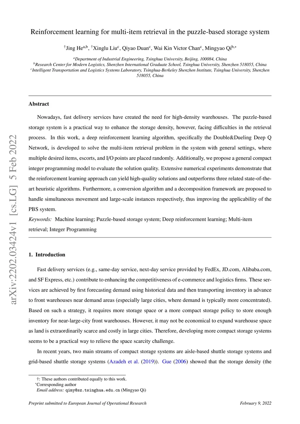 Nowadays, fast delivery services have created the need for high-density warehouses. The puzzle-based storage system is a practical way to enhance the storage density, however, facing difficulties in the retrieval process. In this work, a deep reinforcement learning algorithm, specifically the Double&Dueling Deep Q Network, is developed to solve the multi-item retrieval problem in the system with general settings, where multiple desired items, escorts, and I/O points are placed randomly. Additionally, we propose a general compact integer programming model to evaluate the solution quality. Extensive numerical experiments demonstrate that the reinforcement learning approach can yield high-quality solutions and outperforms three related state-of-the-art heuristic algorithms. Furthermore, a conversion algorithm and a decomposition framework are proposed to handle simultaneous movement and large-scale instances respectively, thus improving the applicability of the PBS system.