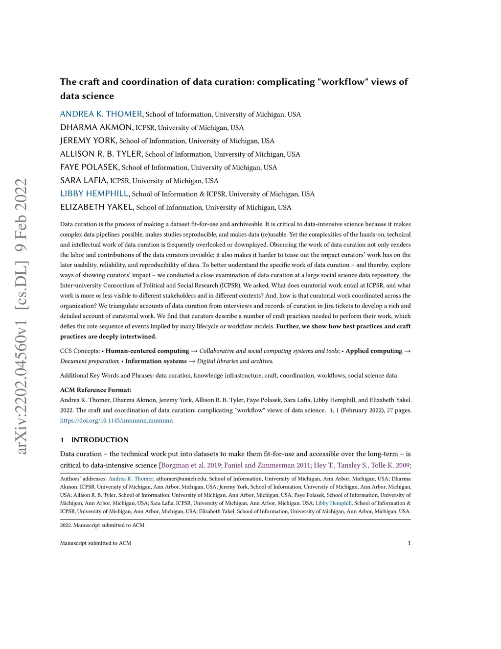 The craft and coordination of data curation: complicating "workflow"