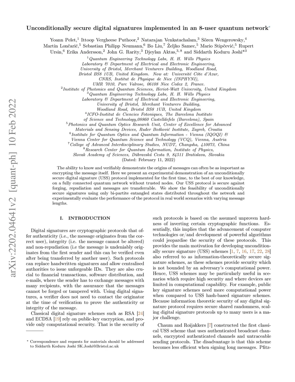 Unconditionally secure digital signatures implemented in an 8-user