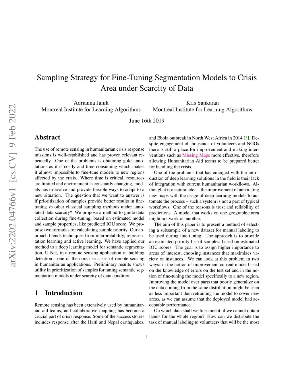 The use of remote sensing in humanitarian crisis response missions is well-established and has proven relevant repeatedly. One of the problems is obtaining gold annotations as it is costly and time consuming which makes it almost impossible to fine-tune models to new regions affected by the crisis. Where time is critical, resources are limited and environment is constantly changing, models has to evolve and provide flexible ways to adapt to a new situation. The question that we want to answer is if prioritization of samples provide better results in fine-tuning vs other classical sampling methods under annotated data scarcity? We propose a method to guide data collection during fine-tuning, based on estimated model and sample properties, like predicted IOU score. We propose two formulas for calculating sample priority. Our approach blends techniques from interpretability, representation learning and active learning. We have applied our method to a deep learning model for semantic segmentation, U-Net, in a remote sensing application of building detection - one of the core use cases of remote sensing in humanitarian applications. Preliminary results shows utility in prioritization of samples for tuning semantic segmentation models under scarcity of data condition.