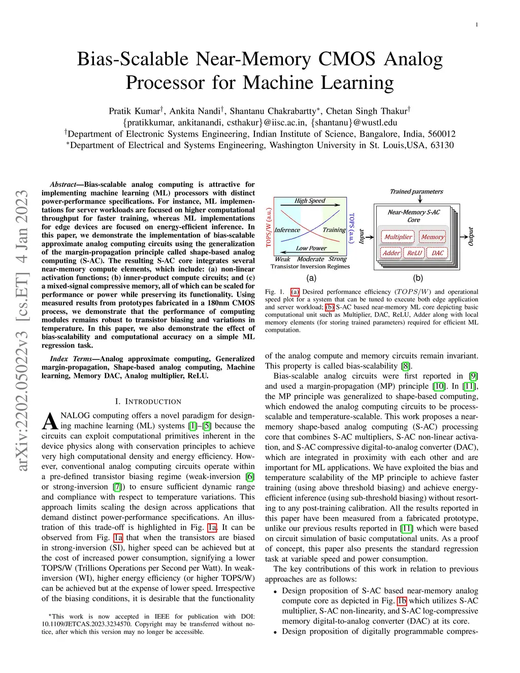 Bias-Scalable Near-Memory CMOS Analog Processor for Machine Learning