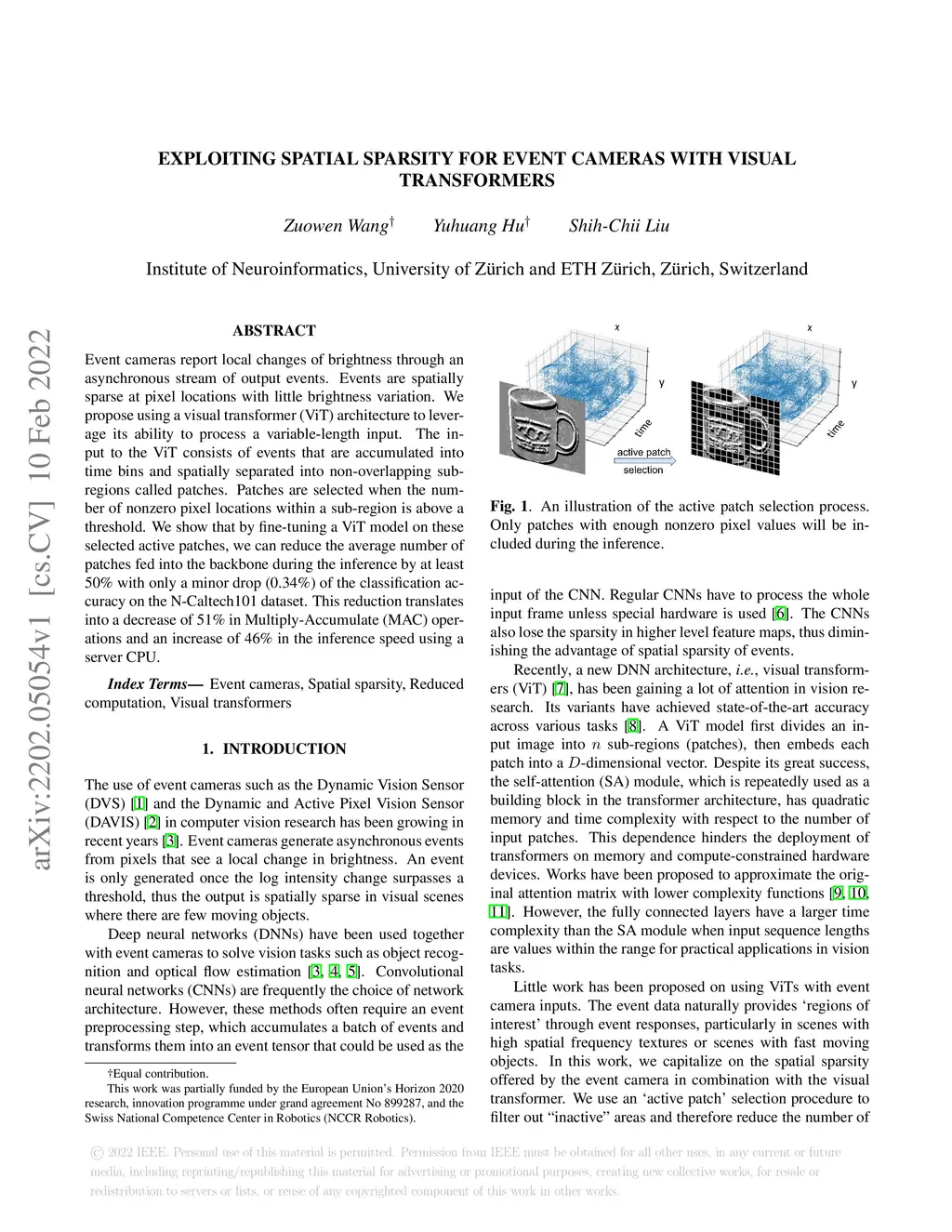 Event cameras report local changes of brightness through an asynchronous stream of output events. Events are spatially sparse at pixel locations with little brightness variation. We propose using a visual transformer (ViT) architecture to leverage its ability to process a variable-length input. The input to the ViT consists of events that are accumulated into time bins and spatially separated into non-overlapping sub-regions called patches. Patches are selected when the number of nonzero pixel locations within a sub-region is above a threshold. We show that by fine-tuning a ViT model on the selected active patches, we can reduce the average number of patches fed into the backbone during the inference by at least 50% with only a minor drop (0.34%) of the classification accuracy on the N-Caltech101 dataset. This reduction translates into a decrease of 51% in Multiply-Accumulate (MAC) operations and an increase of 46% in the inference speed using a server CPU.