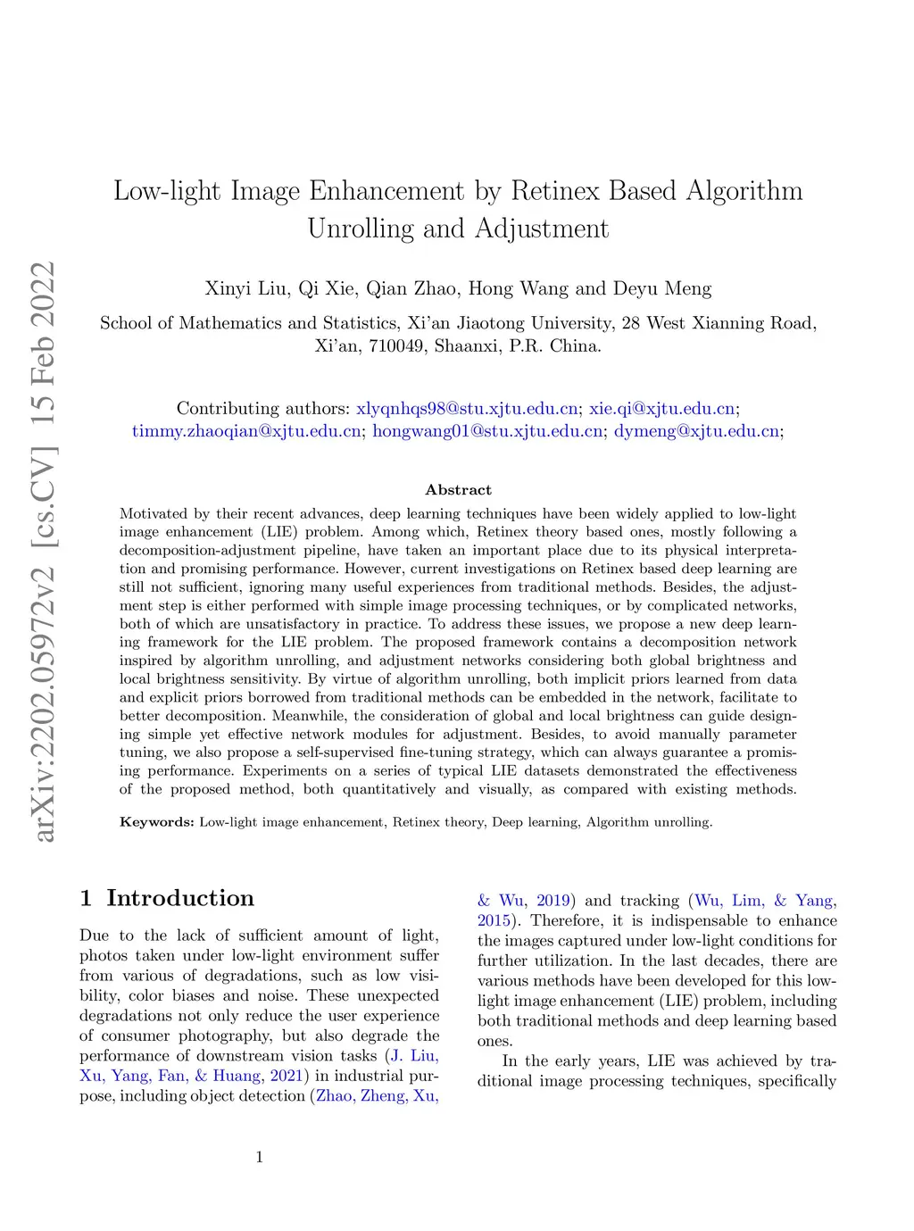 Low-light Image Enhancement by Retinex Based Algorithm Unrolling and
