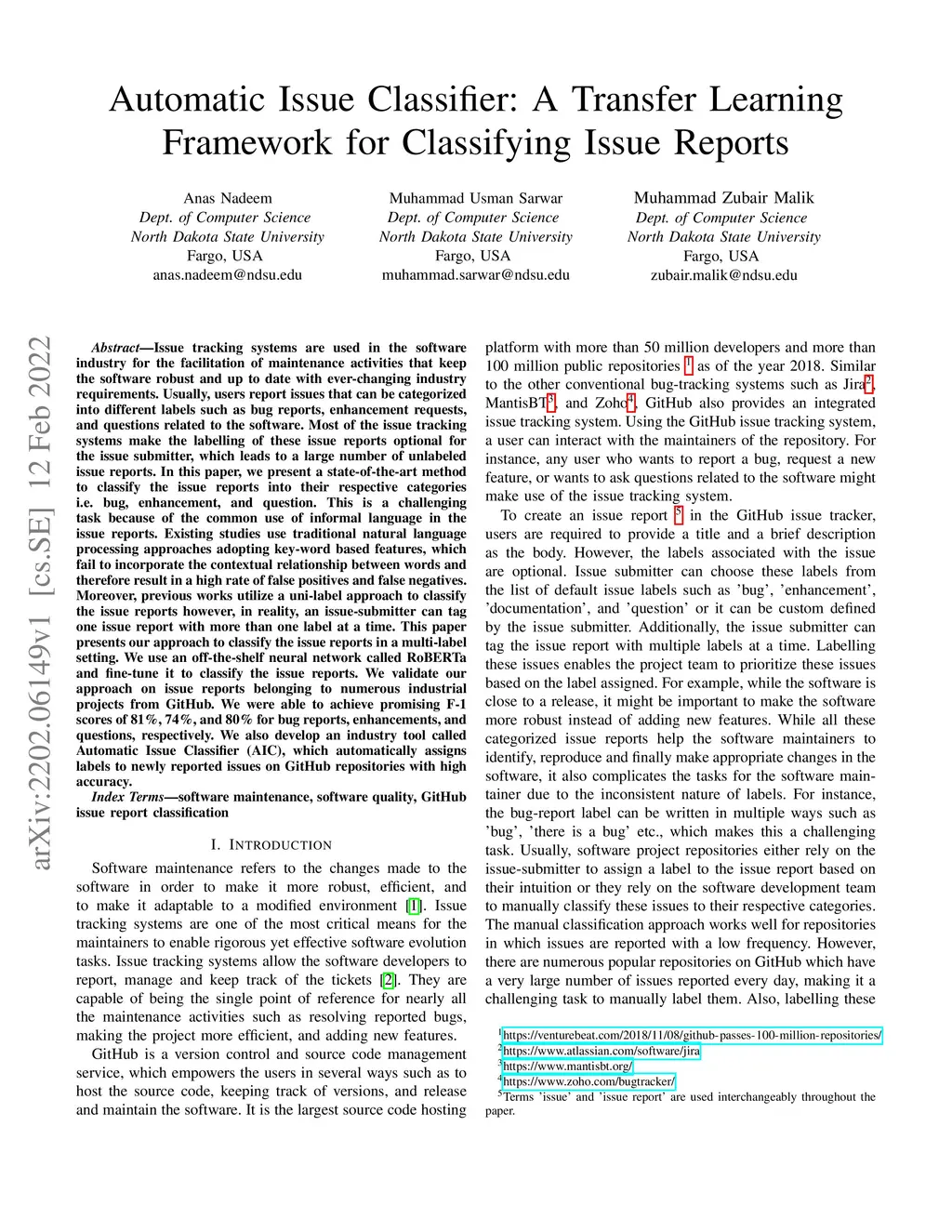 Automatic Issue Classifier: A Transfer Learning Framework for