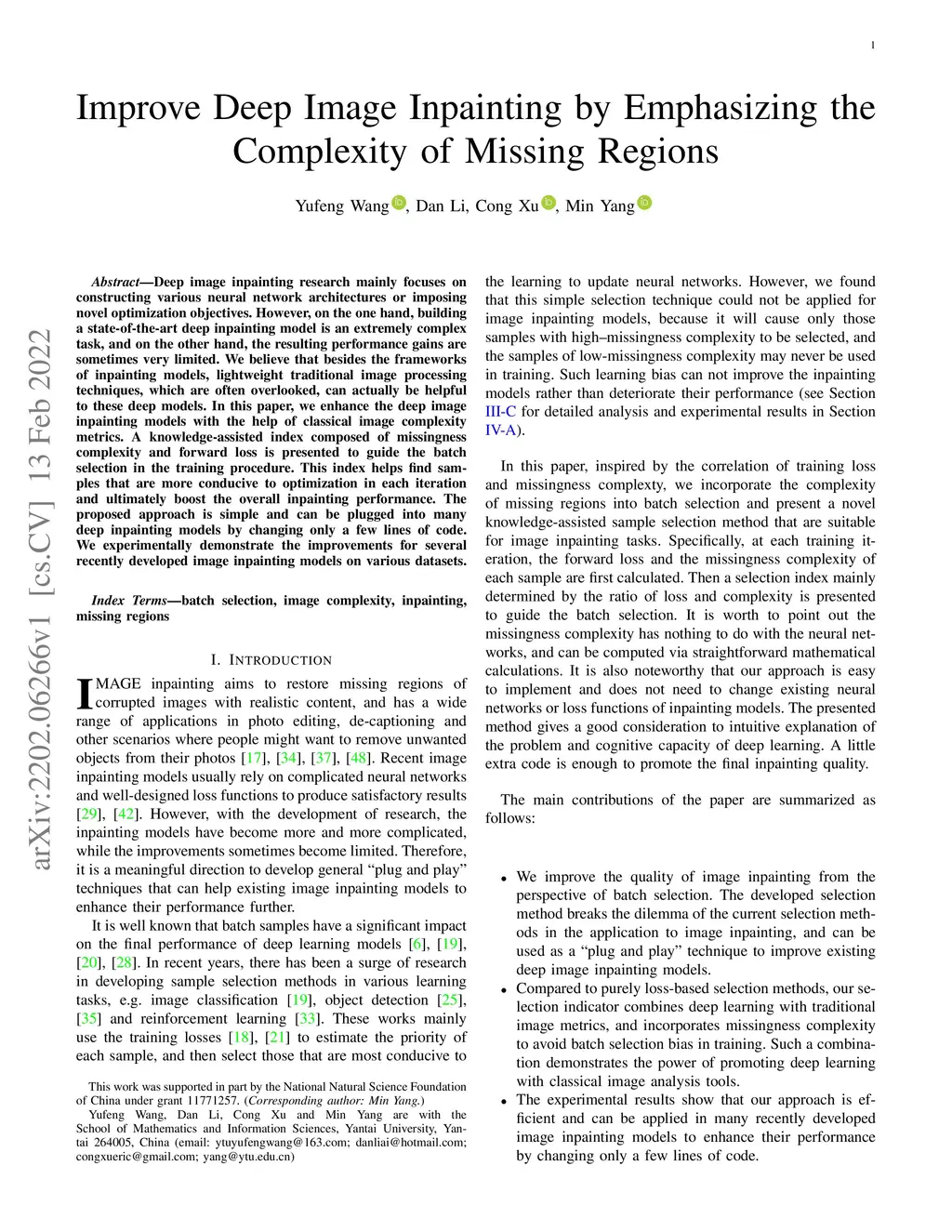 Improve Deep Image Inpainting by Emphasizing the Complexity of Missing