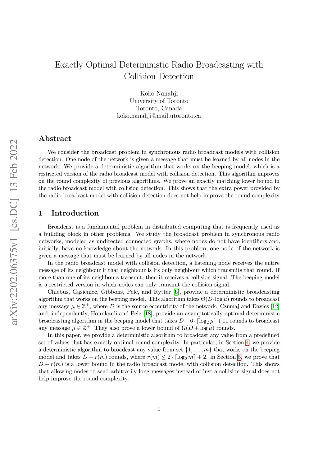 Exactly Optimal Deterministic Radio Broadcasting with Collision