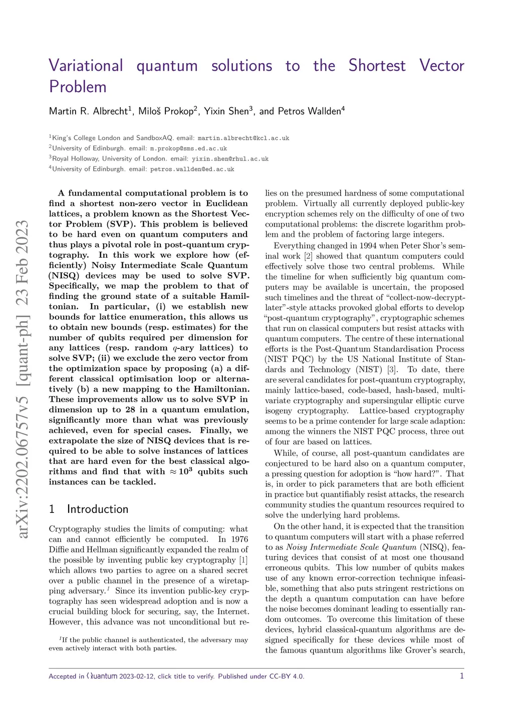 A fundamental computational problem is to find a shortest non-zero vector in Euclidean lattices, a problem known as the Shortest Vector Problem (SVP). This problem is believed to be hard even on quantum computers and thus plays a pivotal role in post-quantum cryptography. In this work we explore how (efficiently) Noisy Intermediate Scale Quantum (NISQ) devices may be used to solve SVP. Specifically, we map the problem to that of finding the ground state of a suitable Hamiltonian. In particular, (i) we establish new bounds for lattice enumeration, this allows us to obtain new bounds (resp.~estimates) for the number of qubits required per dimension for any lattices (resp.~random q-ary lattices) to solve SVP; (ii) we exclude the zero vector from the optimization space by proposing (a) a different classical optimisation loop or alternatively (b) a new mapping to the Hamiltonian. These improvements allow us to solve SVP in dimension up to 28 in a quantum emulation, significantly more than what was previously achieved, even for special cases. Finally, we extrapolate the size of NISQ devices that is required to be able to solve instances of lattices that are hard even for the best classical algorithms and find that with approximately noisy qubits such instances can be tackled.