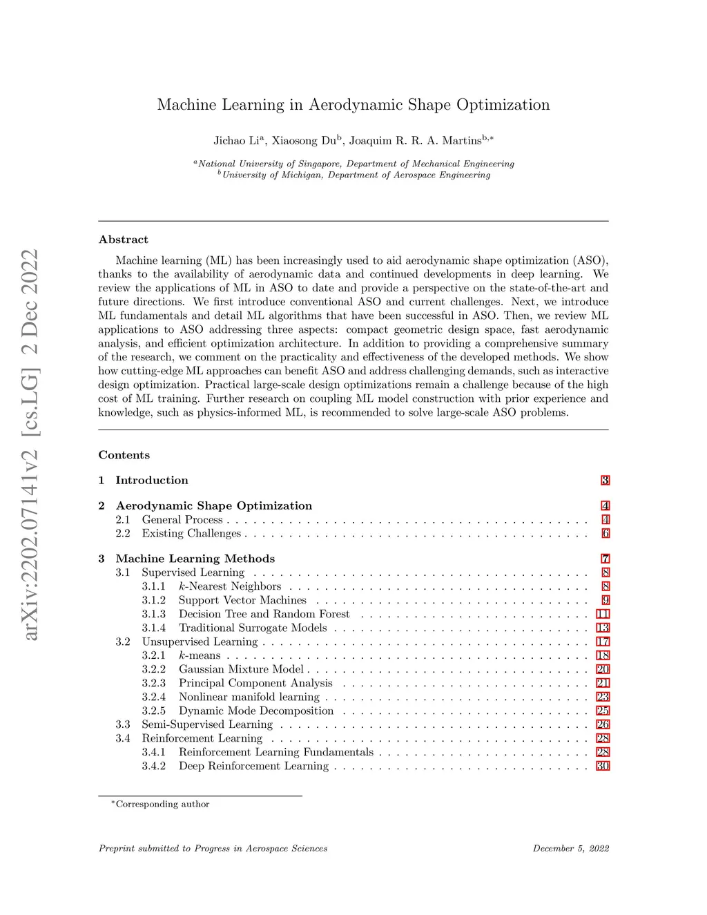 Machine Learning in Aerodynamic Shape Optimization