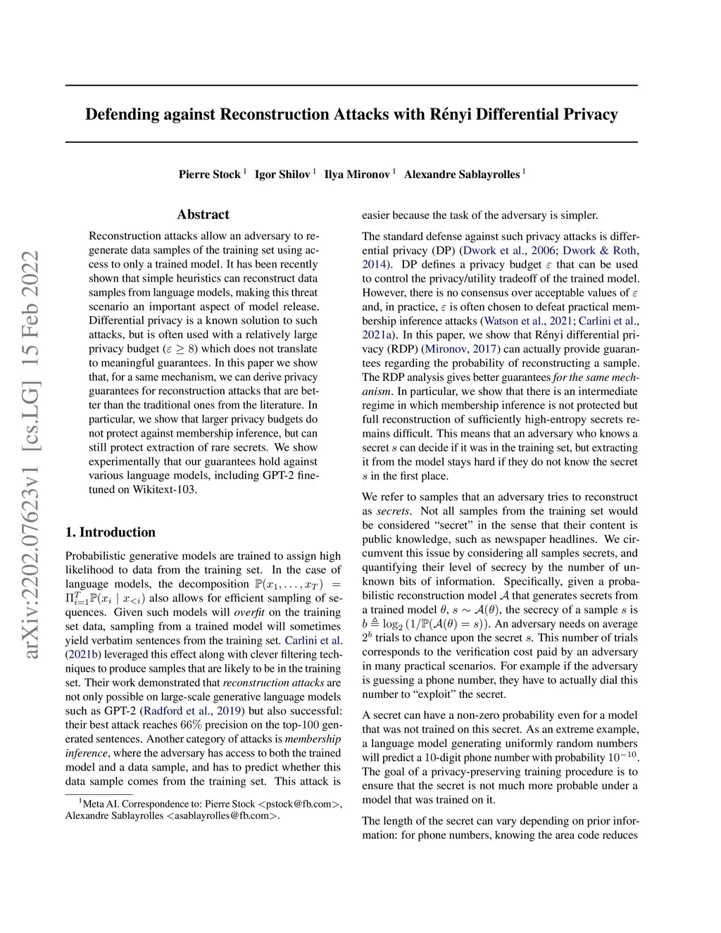 Defending against Reconstruction Attacks with Rényi Differential