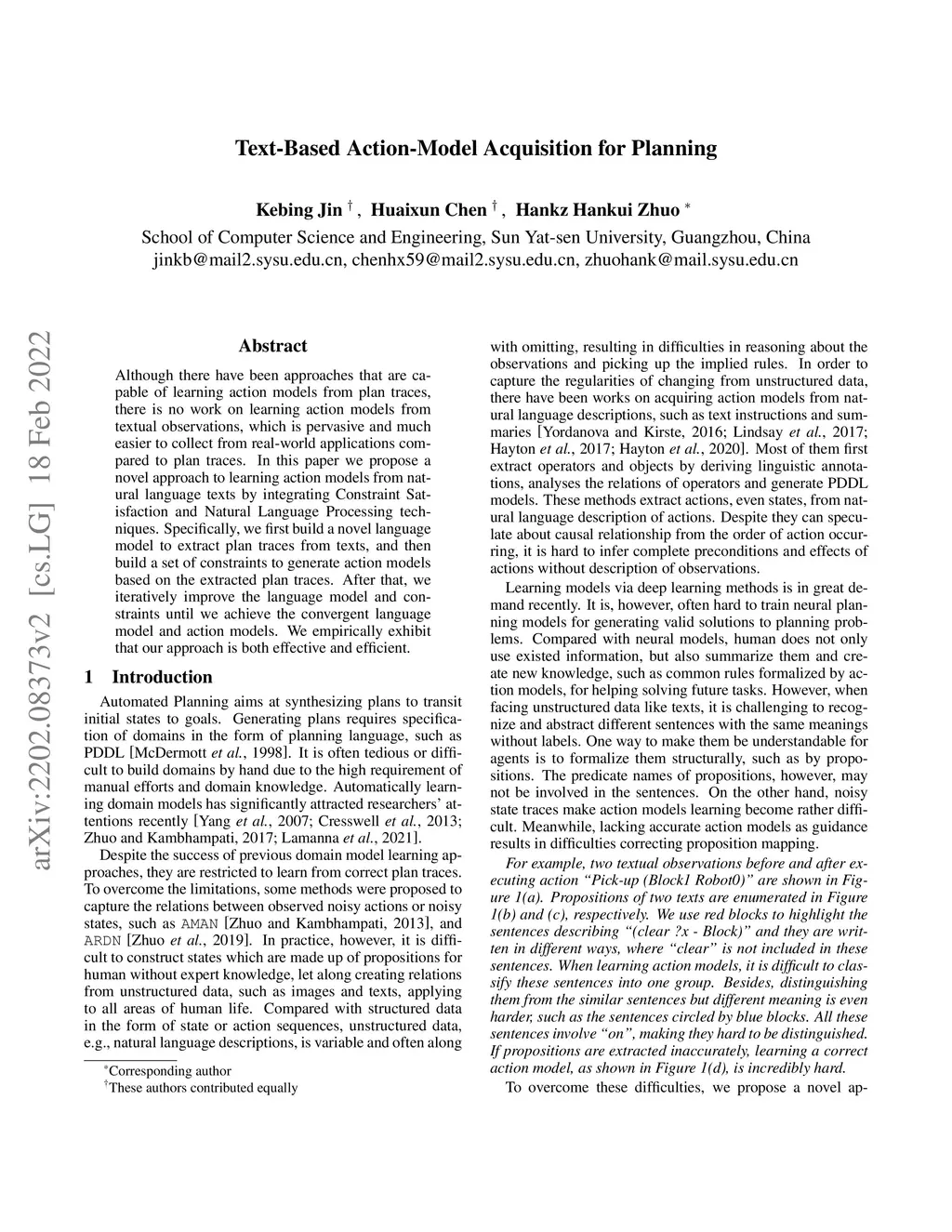 Text-Based Action-Model Acquisition for Planning