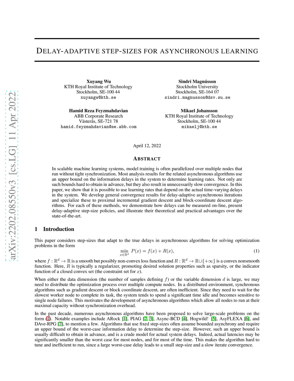 In scalable machine learning systems, model training is often parallelized over multiple nodes that run without tight synchronization. Most analysis results for the related asynchronous algorithms use an upper bound on the information delays in the system to determine learning rates. Not only are such bounds hard to obtain in advance, but they also result in unnecessarily slow convergence. In this paper, we show that it is possible to use learning rates that depend on the actual time-varying delays in the system. We develop general convergence results for delay-adaptive asynchronous iterations and specialize these to proximal incremental gradient descent and block-coordinate descent algorithms. For each of these methods, we demonstrate how delays can be measured on-line, present delay-adaptive step-size policies, and illustrate their theoretical and practical advantages over the state-of-the-art.