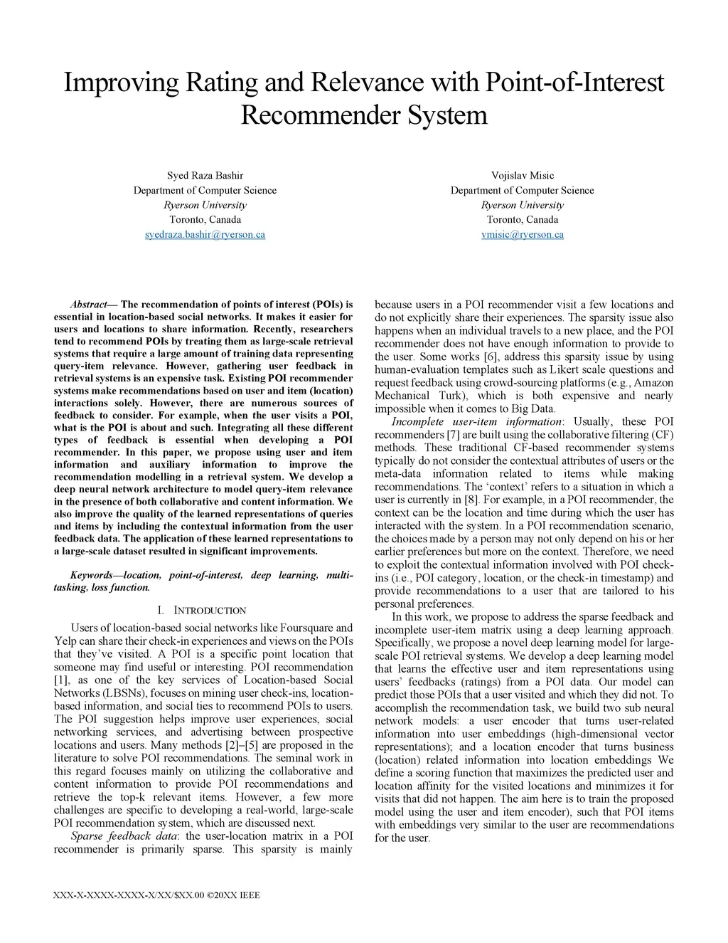 Improving Rating and Relevance with Point-of-Interest Recommender System