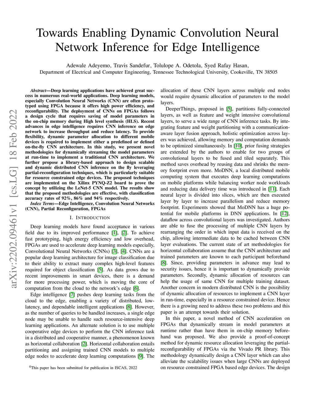 Deep learning applications have achieved great success in numerous real-world applications. Deep learning models, especially Convolution Neural Networks (CNN) are often prototyped using FPGA because it offers high power efficiency and reconfigurability. The deployment of CNNs on FPGAs follows a design cycle that requires saving of model parameters in the on-chip memory during High-level synthesis (HLS). Recent advances in edge intelligence require CNN inference on edge network to increase throughput and reduce latency. To provide flexibility, dynamic parameter allocation to different mobile devices is required to implement either a predefined or defined on-the-fly CNN architecture. In this study, we present novel methodologies for dynamically streaming the model parameters at run-time to implement a traditional CNN architecture. We further propose a library-based approach to design scalable and dynamic distributed CNN inference on the fly leveraging partial-reconfiguration techniques, which is particularly suitable for resource-constrained edge devices. The proposed techniques are implemented on the Xilinx PYNQ-Z2 board to prove the concept by utilizing the LeNet-5 CNN model. The results show that the proposed methodologies are effective, with classification accuracy rates of 92%, 86%, and 94% respectively