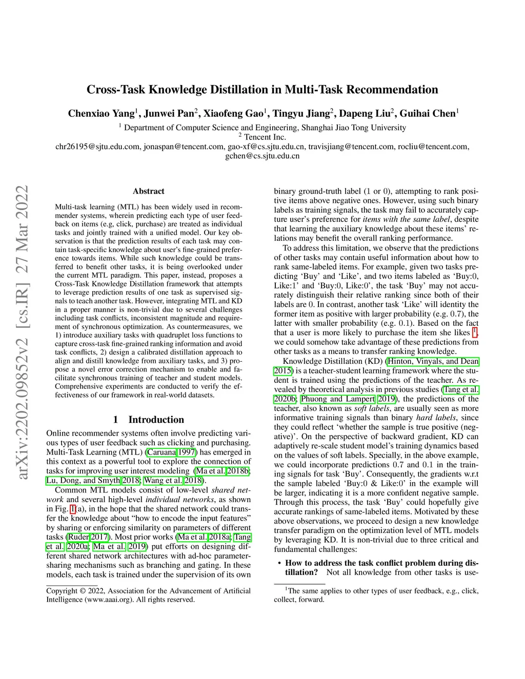 Cross-Task Knowledge Distillation in Multi-Task Recommendation