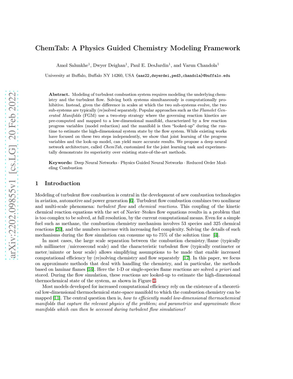 ChemTab: A Physics Guided Chemistry Modeling Framework