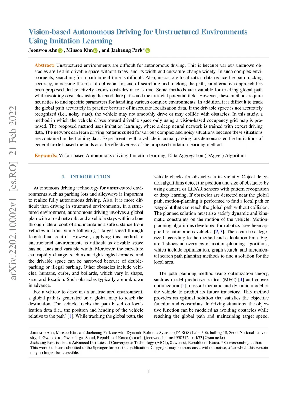 Vision-based Autonomous Driving for Unstructured Environments Using