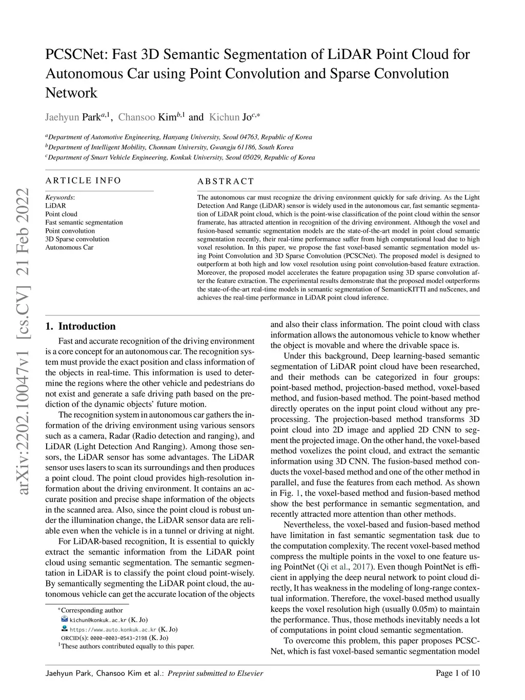 Autonomous Car using Point Convolution and Sparse Convolution Network