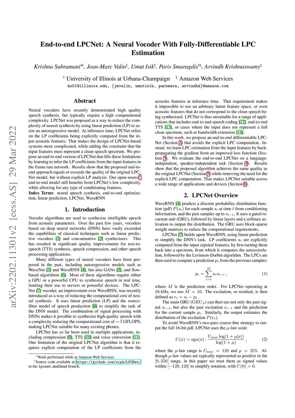 End-to-end LPCNet: A Neural Vocoder With Fully-Differentiable LPC