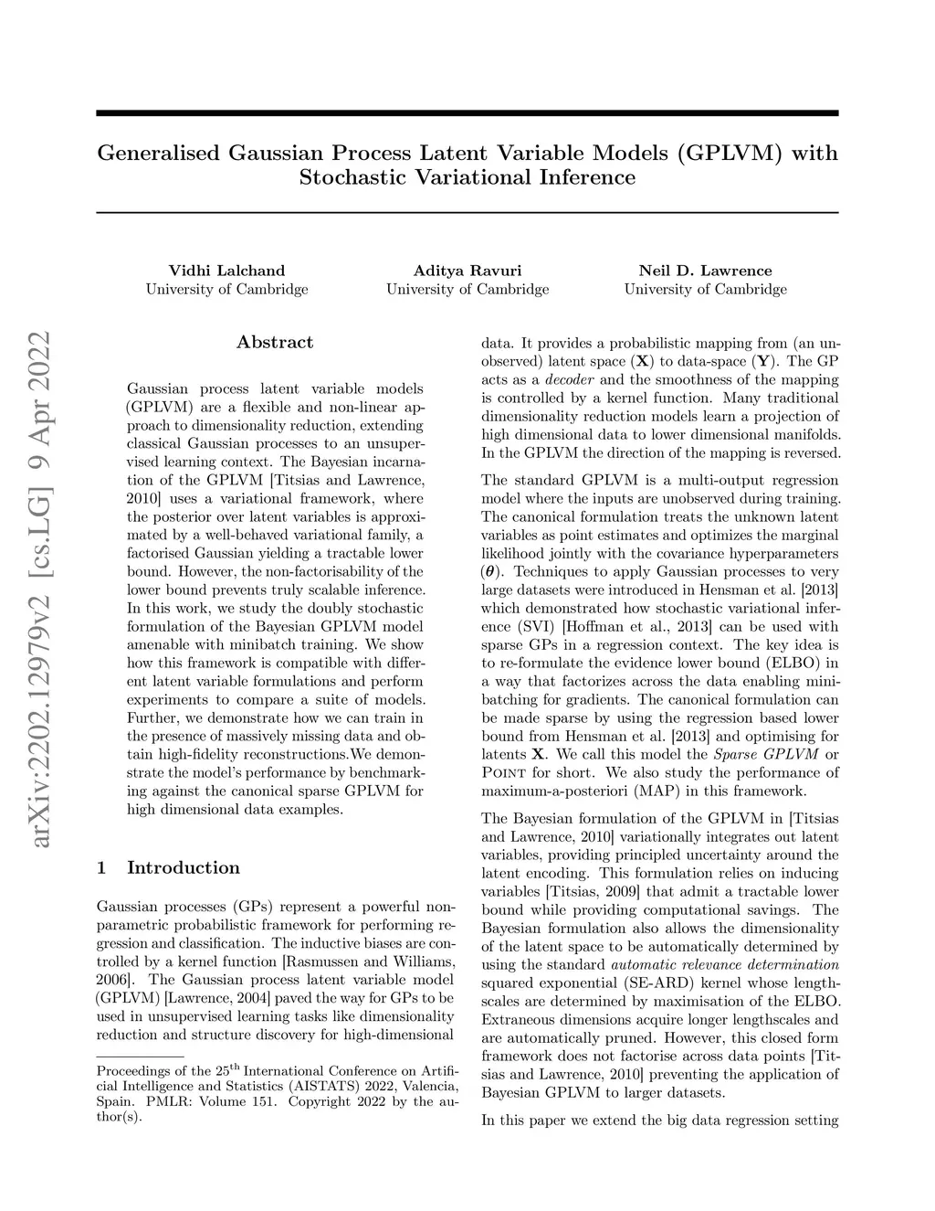 Generalised Gaussian Process Latent Variable Models (GPLVM) with Stochastic Variational Inference