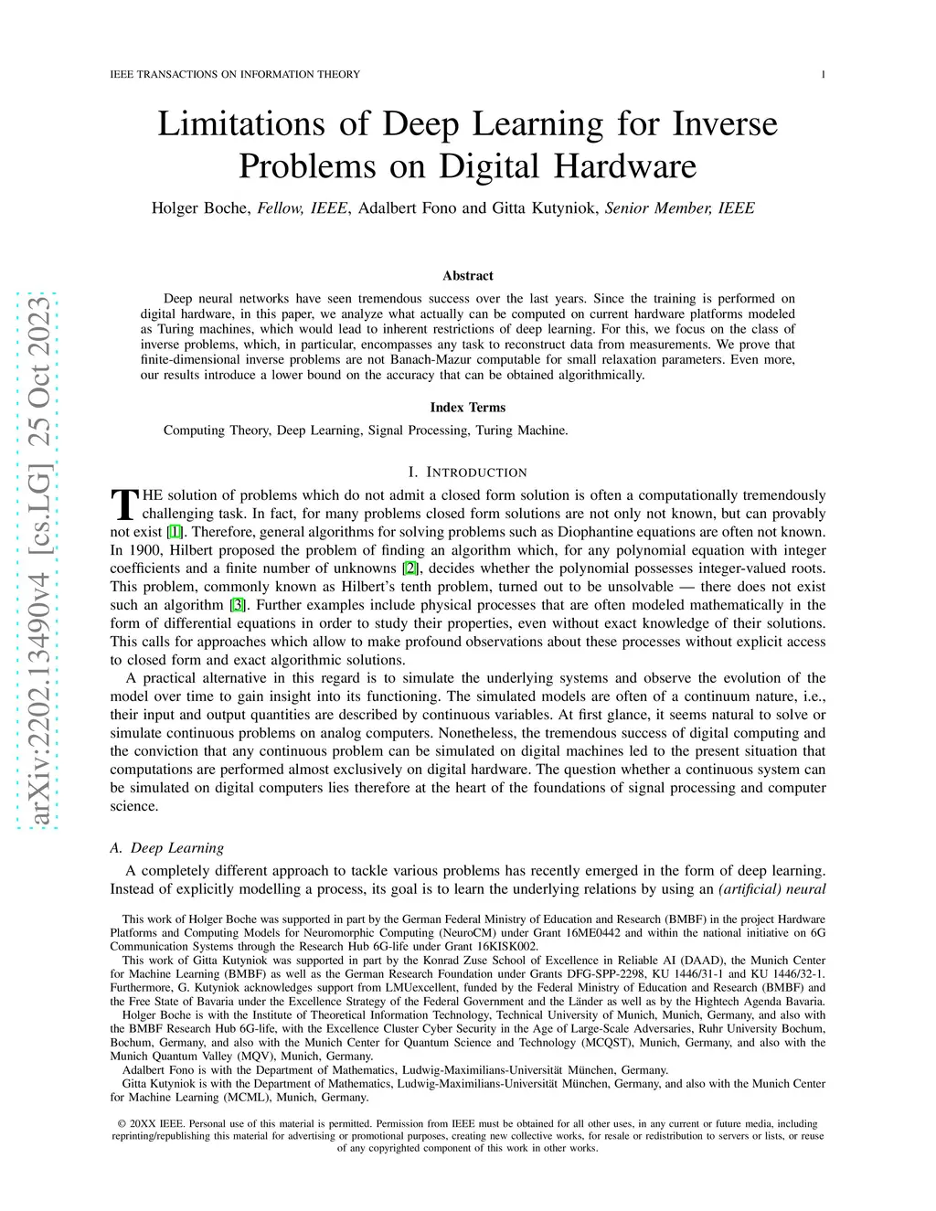 Limitations of Deep Learning for Inverse Problems on Digital Hardware