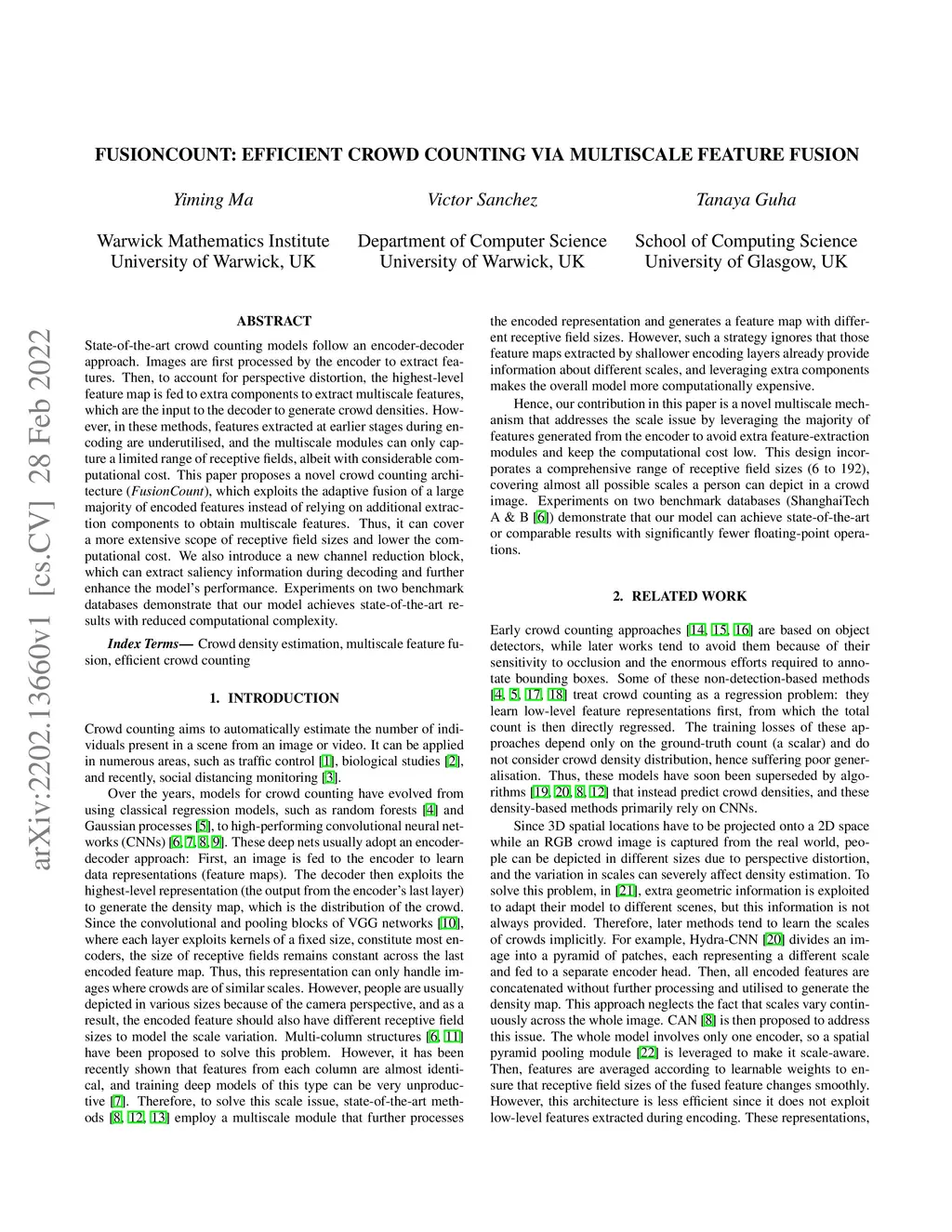 FusionCount: Efficient Crowd Counting via Multiscale Feature Fusion