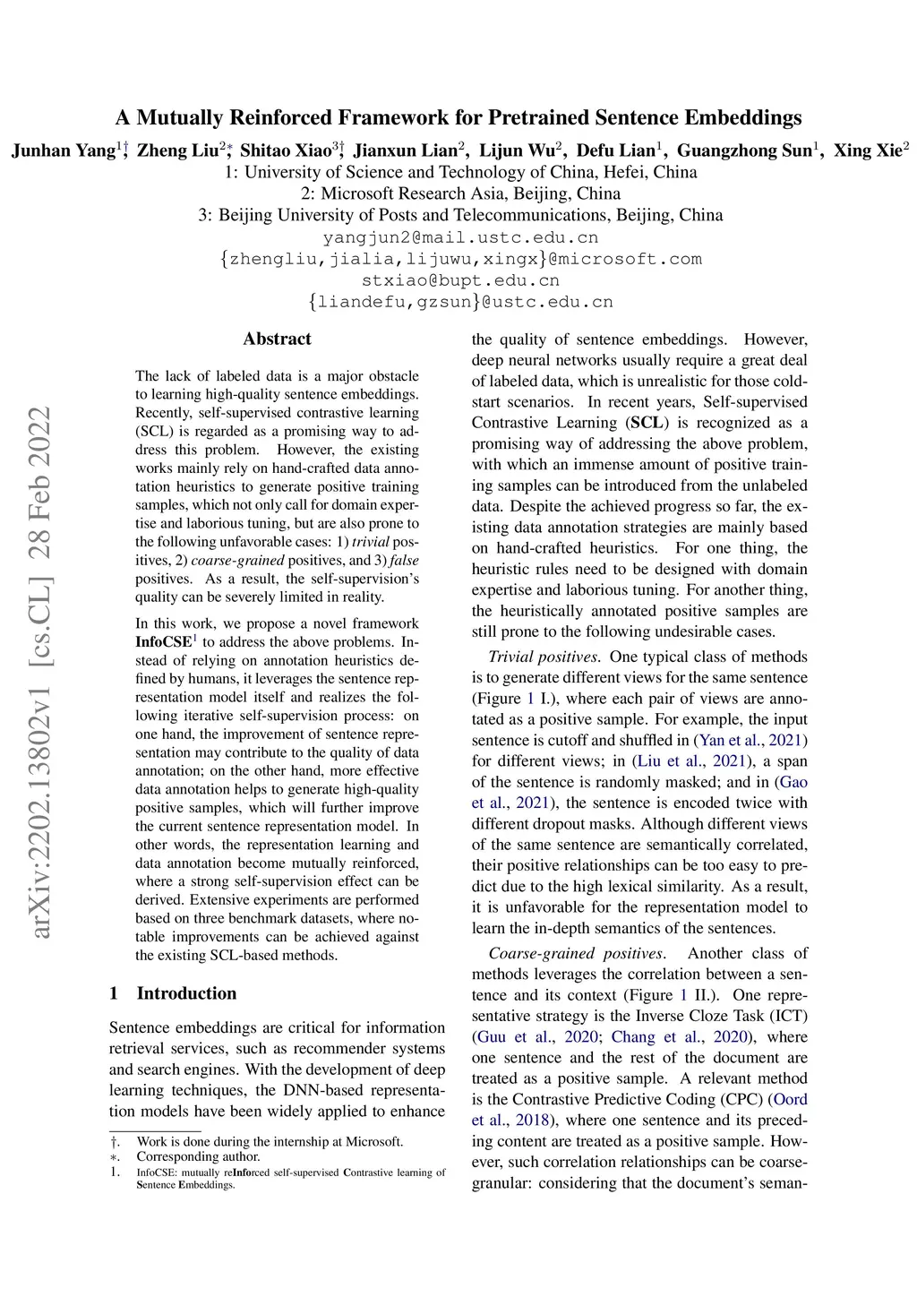 A Mutually Reinforced Framework for Pretrained Sentence Embeddings