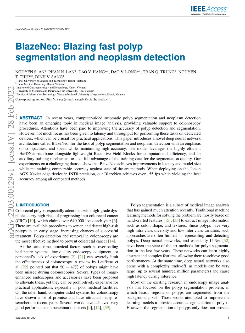 BlazeNeo: Blazing fast polyp segmentation and neoplasm detection