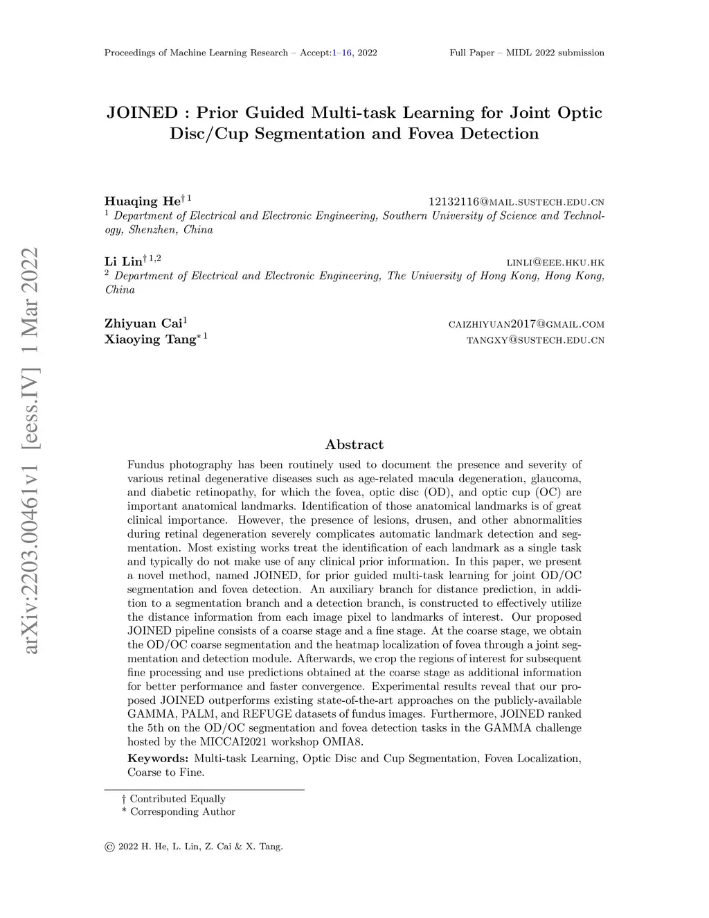 JOINED : Prior Guided Multi-task Learning for Joint Optic Disc/Cup