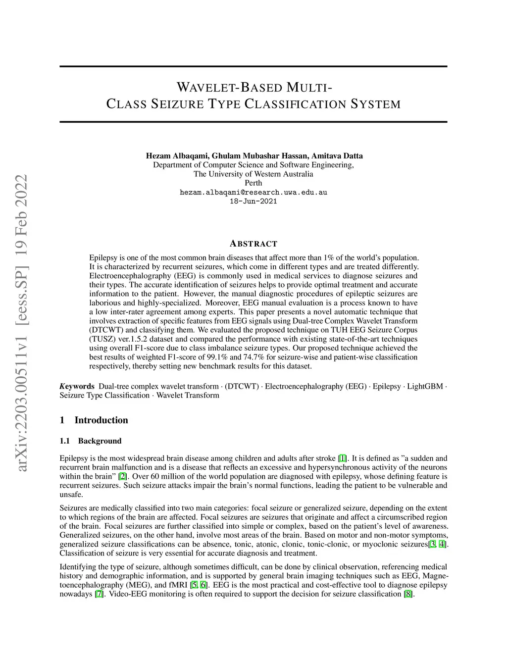 Wavelet-Based Multi-Class Seizure Type Classification System